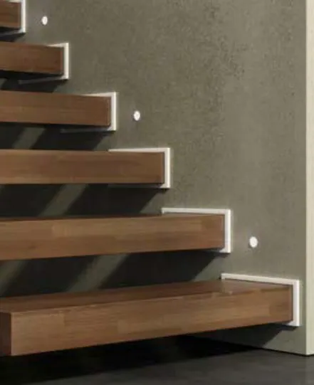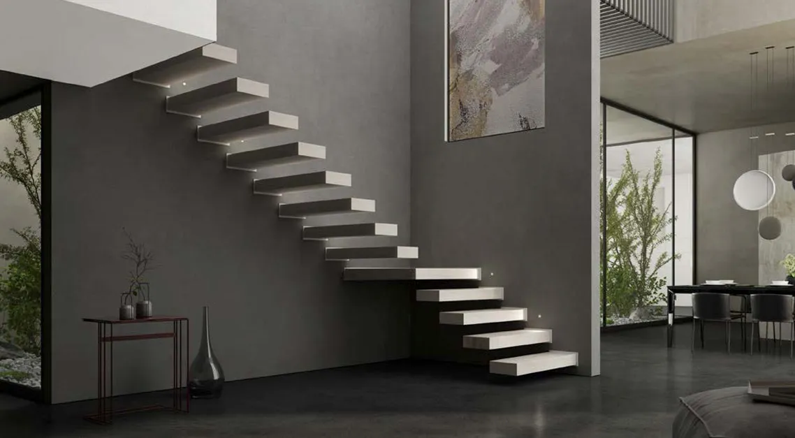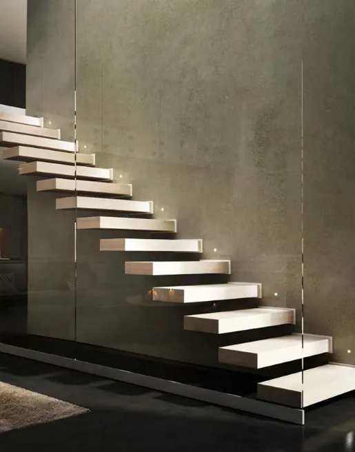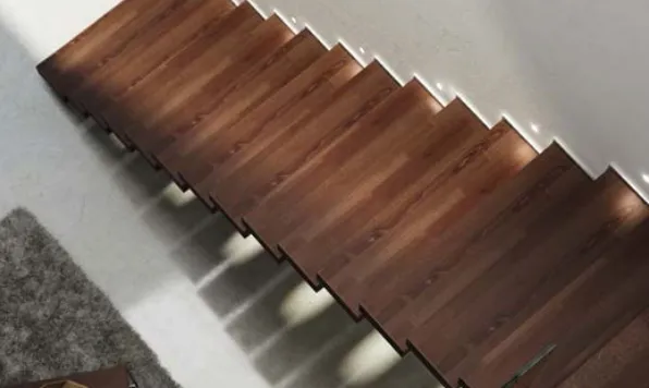 Suspended steps made in solid wood for contemporary and minimal environments, designed to confer lightness to any architecture.