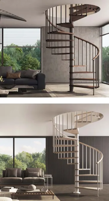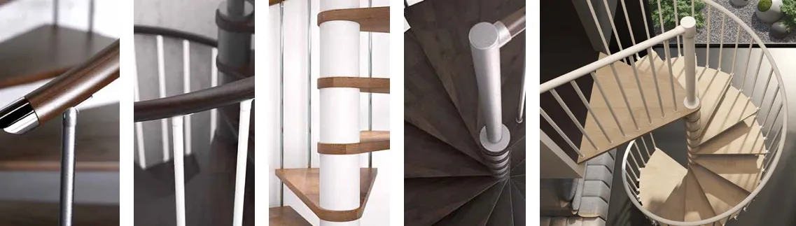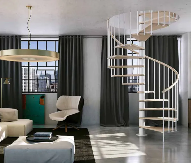 The modular spiral staircase which combines the warmth of solid wood with the strength of steel, offering a variety of combinations of diameters and finishes.