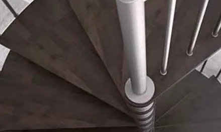 The Phola modular spiral staircase is suitable for small environments. The staircase round section, centre post, rail system is in metal and the steps are in solid wood.